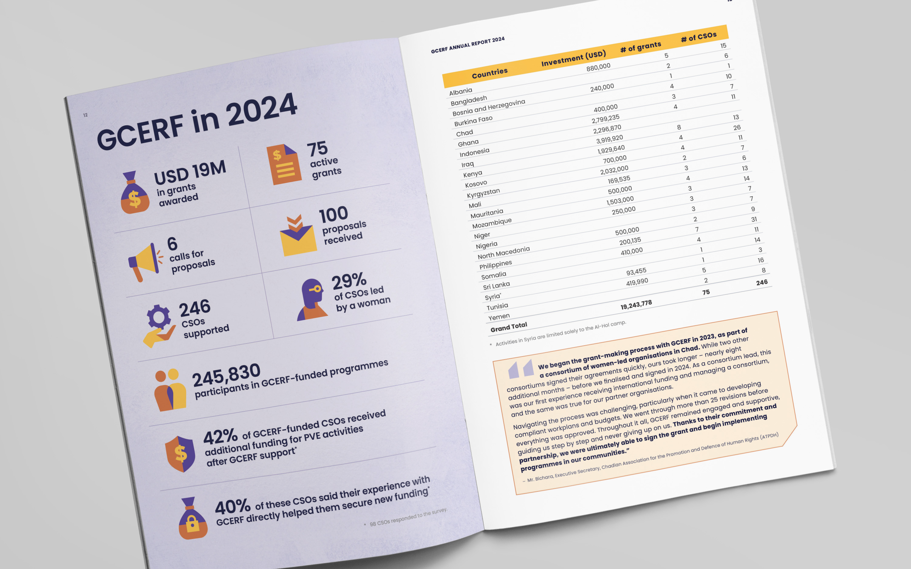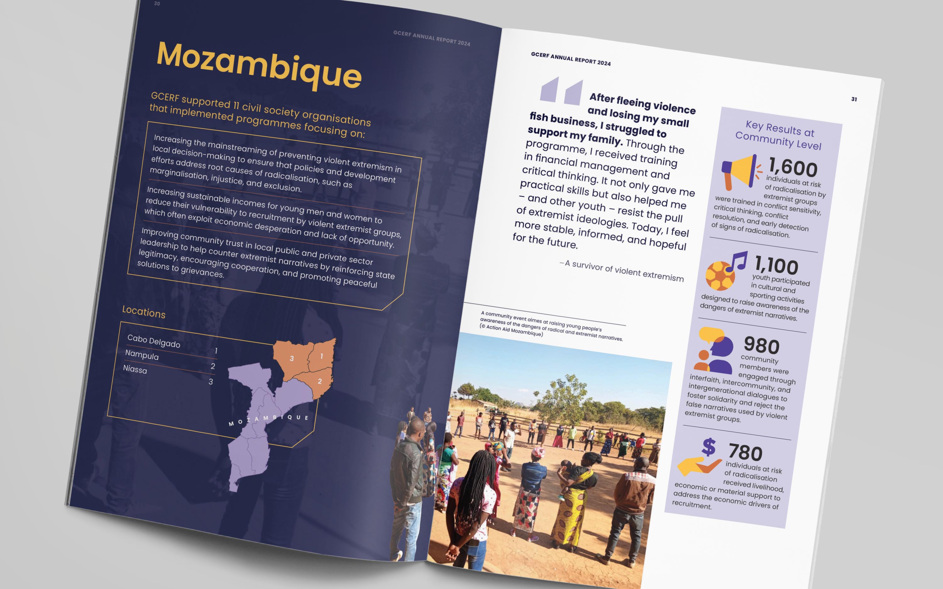 The GCERF Annual Report 2024 highlights the Global Community Engagement and Resilience Fund’s efforts to prevent violent extremism and terrorism in some of the world’s most fragile contexts. The report showcases expanded support to frontline civil society organizations, adaptations to shifting security dynamics, and strengthened reintegration efforts for former terrorist fighters and their families, covering impact across 20+ countries, community-led solutions restoring hope, and transparent financials.