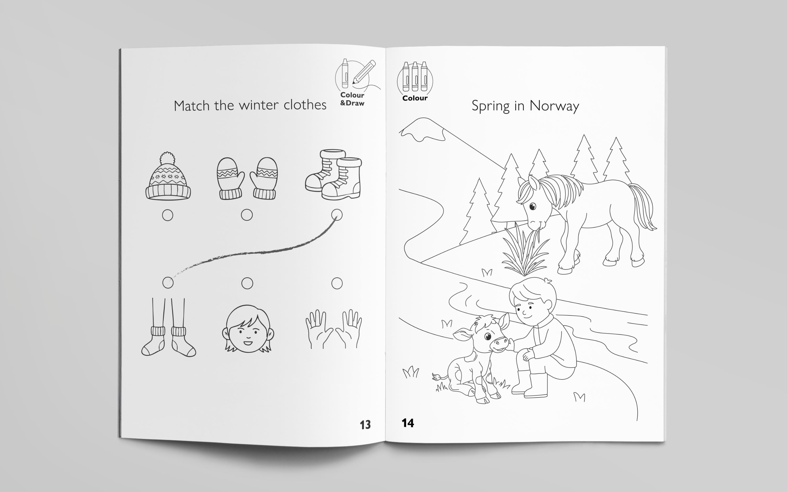 For the Norwegian Cultural Orientation (NORCO) programme, we created illustrated materials for a children’s activity book and tailored presentations for children, teens, and adults. Our designs use clear visuals, playful graphics, and thoughtful layouts to make cultural information accessible and engaging, helping refugees and receiving communities understand each other’s expectations and backgrounds.